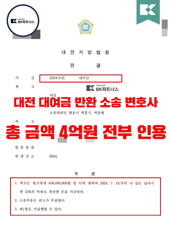 [피고 대리, 위자료 청구 기각(전부승소)] 대전가정법원 202*드단***본 사건은 이혼 위자료 청구 소송 에서 실력있는 BK파트너스의 대전 이혼 전문 변호사가 일방 '피고'의 법률 소송 대리인으로 사건을 도맡아 기각 판결을 받아낸 성공 사례입니다.사건 개요저희 사무실에 찾아온 의뢰인 B씨는 사내의 동료 직장인 Y씨의 배우자 U씨(원고)로부터 손해배상청구의 소송을 당하게 되었습니다. 그 사유를 들어보니 U씨와 Y씨는 2019년 서로 법적으로 부부인 사이였으나 3년간의 부부관계 끝에 2022년에 이혼을 하게 되었습니다. U씨는 이혼에 따른 유책사유에 대해서 Y씨가 법적인 부부관계임에도 불구하고 의뢰인 B씨와 부정행위를 일삼아 가정에 불화가 생겼다며, 이에 대한 손해배상 격인 위자료 청구의 소를 제기하게 된 것이였는데요. U씨로부터 약 2,500만원의 청구의 소를 받은 의뢰인 B씨는 억울함을 토로하며 대전 이혼 전문 변호사를 찾았던 것이였습니다. 우선 원고는 이혼 위자료 청구 소송이 민사상의 배상판결이기 때문에 관련한 사건을 알게되고 나서 소멸시효가 '3년' 점으로 청구를 한것으로 판단했습니다.대전 이혼 전문 변호사의 조력대전 이혼 전문 변호사를 확보하고 있는 BK파트너스는 피고의 법률 대리인으로서, 사건에 대한 내막을 조사하게 되었습니다. 사내에서 의뢰인과 동료 직장인 Y씨와의 관계에 대해서 억울함을 소명할만한 증거들을 수집하기 시작하였습니다. 원고 U씨는 배우자였던 Y씨와 의뢰인 사이에 '통화 내역'을 듣고 별거를 시작하였습니다. 의뢰인 B씨는 곤란한 상황이 되자, 원고에게 2022년에 사과와 함께, 사적인 만남과 사적인 연락을 하지않겠다고 약속을 했던 사실이 있다는 것도 발견을 하게 되었습니다. 대전 이혼 전문 변호사는 원고는 이를 명분으로 이혼 위자료 청구를 진행했다고 판단을 하였습니다. 그러나, 각종 녹취와 증거를 모두 수집을 해보니 의뢰인 B씨는 Y씨와 친한 사내 동료 였기도 하였지만, 개인적으로 친분이 있는 '누나'이기도 했습니다. 다소 오해가 있을 법한 상황이였지만, 대전 이혼 전문 변호사는 부정행위를 했다고 볼 수 있는 명확한 증거가 되지 않음을 의뢰인B씨에게 설명을 드렸습니다. 그리고, 각종 녹취록과 대화내역 등 증거자료들을 모아서 대전가정법원에 출석하여 변론을 시작하였습니다.대전 이혼 전문 변호사의 변론대전 이혼 전문 변호사는 이혼 위자료 청구 소송에 대해서 피고는 청구 기각을 받아야 마땅하다고 주장하였습니다. 그 이유는 사적인 만남과 사적인 연락을 하지 않겠다고 사과와 함께 의사를 전달했던 것은 사내 동료로서 Y씨에게 이미 배우자가 있음을 알고 있는 의뢰인 B씨가 친한 누나이긴 하지만 괜한 구설수에 더 이상 휘말리지 않게하기 위해서 원고에게 의사를 명확하게 밝히려는 취지였다고 설명을 하였습니다. 또한, 원고가 주장하고 싶어하는 각종 대화내역들과 녹취록의 증거들을 살펴보면 부정행위를 할 만큼의 서로간의 감정이 드러난 부분도 없으며 연락한 횟수를 보여주는 증거 역시 2종류 밖에 되지 않기 때문에 교제를 한다고 보기에도 어렵다고 주장하였습니다. 오히려 Y씨가 부정행위로서 의심이 될 만한 넘는 듯한 발언을 하고 있고, 피고가 이를 적극적으로 제지를 하지는 않았지만 이 역시 '사내 동료'로서 직장 동료의 관계를 원만하게 유지하기 위해서 강하게 제지를 하지 않는 것일 뿐 부정행위의 결정적인 증거로서 보기에는 힘들기도 하고 이후 '통화'를 통해서 Y씨에게 주의를 주고 그 이후로 의뢰인 B씨는 사적인 연락을 하지 않았다며 최종 변론을 마쳤습니다.재판 결과원고가 청구한 소송에 대한 '기각' 선고 재판부 역시 원고가 주장하는 증거에서도 의심될만한 정황은 볼 수 있다고 하였지만, 대전 이혼 전문 변호사가 주장하는 것 처럼 부정행위로 볼 만한 결정적인 증거가 되지 않는다며, 원고의 청구는 이유 없다고 소송에 대한 '기각' 판결을 내렸습니다.