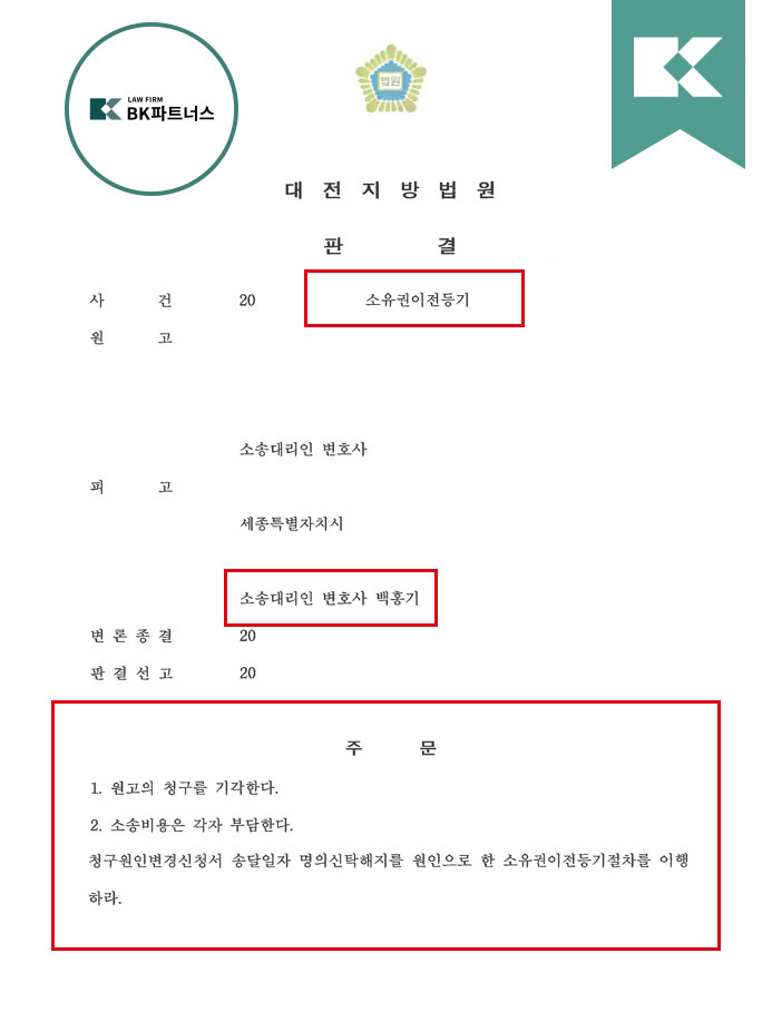 [소유권이전등기, 전부승소] 대전지방법원 20**가단222478