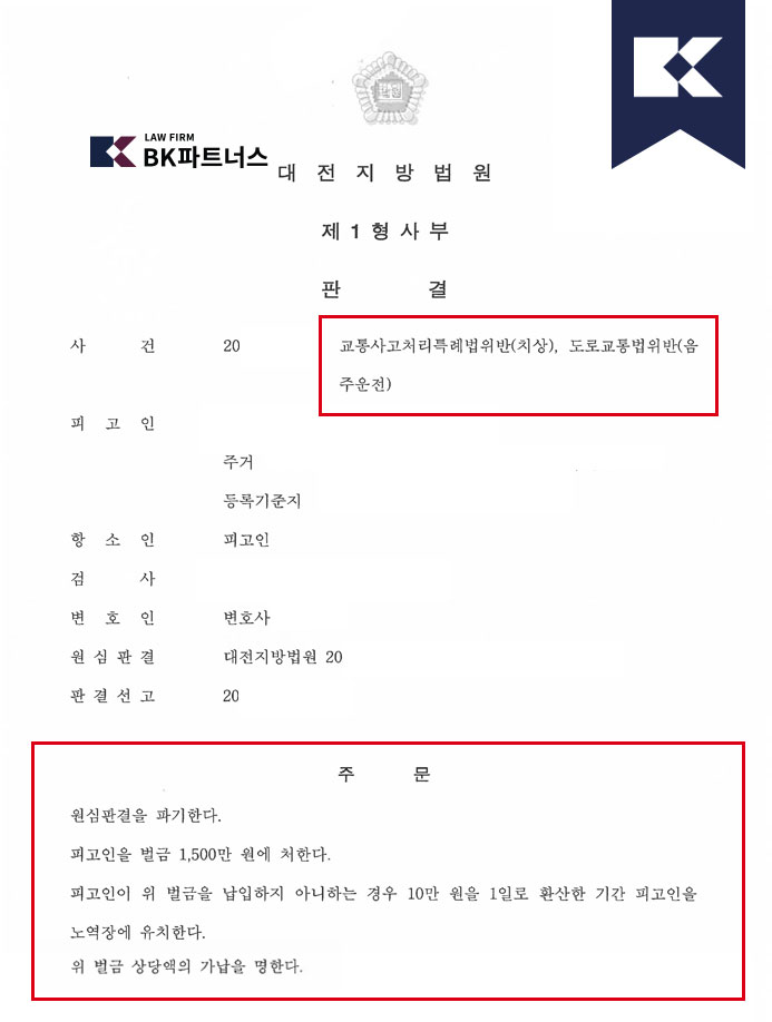 이에 의뢰인은 대전 음주운전 사건에 특화된 대전 법률사무소 BK파트너스에 항소심 사건을 새롭게 의뢰하였습니다. -